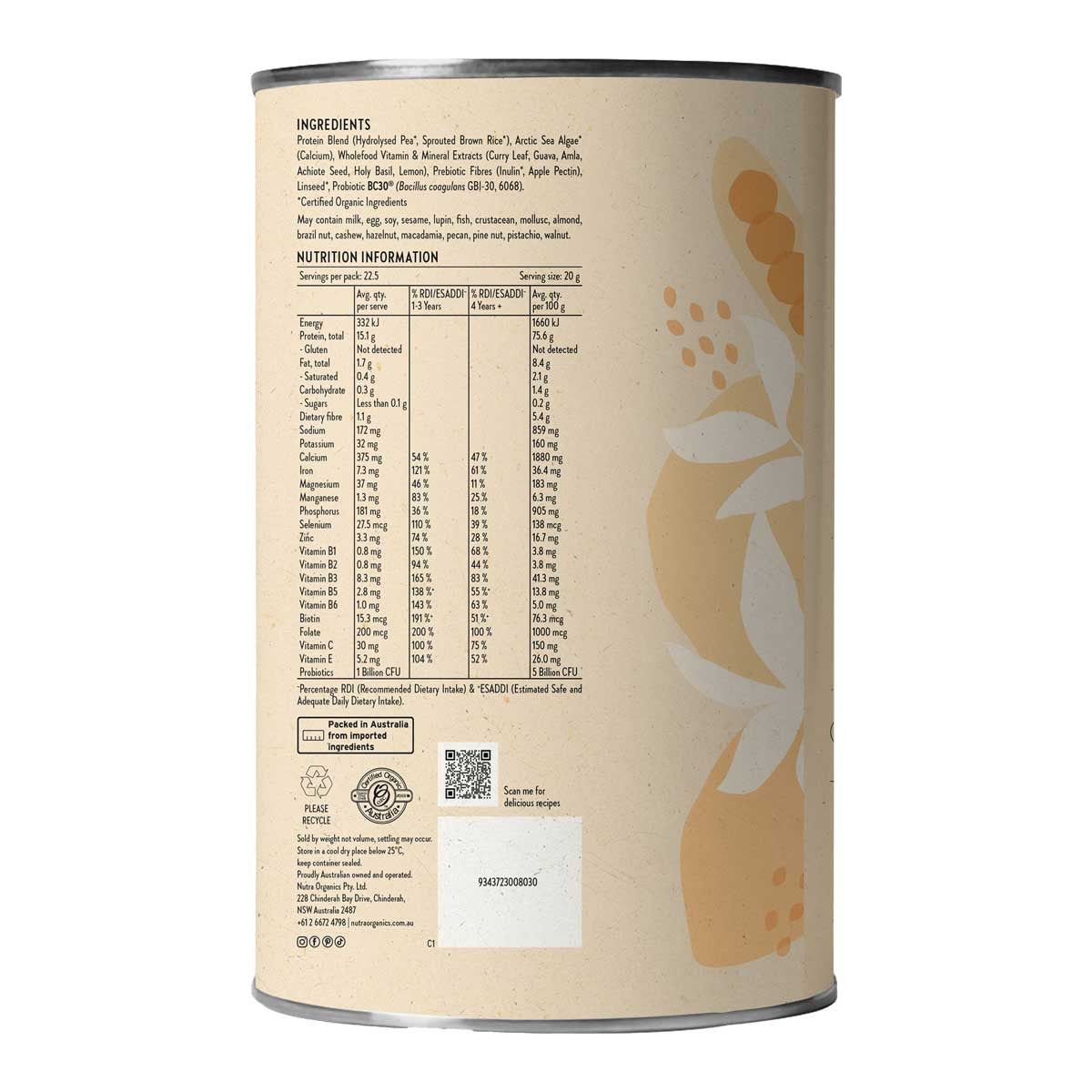 Nutra Organics Thriving Family - Unflavoured: Thriving Family is a delicious plant-based protein & wholefood multivitamin blend with 17 vitamins and minerals to help every member of the family thrive. There’s also +46% more serves than our flavours for an extra week of nourishment.